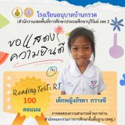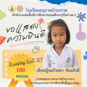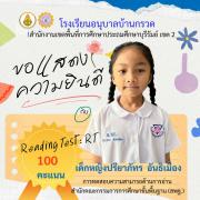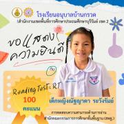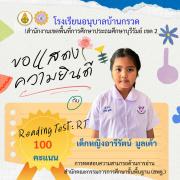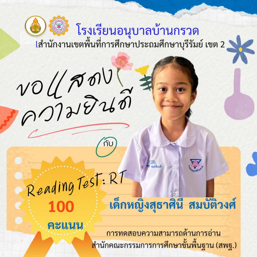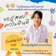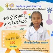 ขอแสดงความยินดีนักเรียนชั้นประถมศึกษาปีที่ 1 ที่มีผลการทดสอบความสามารถด้านการอ่าน (Reading test : RT) 100 คะแนนเต็ม