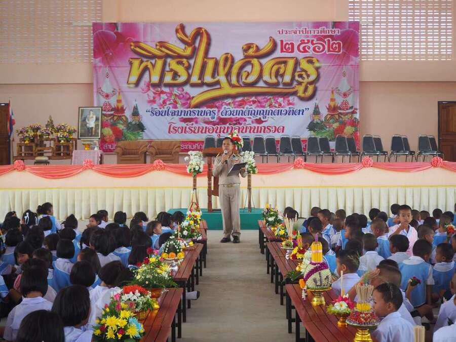 โรงเรียนอนุบาลบ้านกรวด จัดพิธีไหว้ครู ประจำปีการศึกษา 25ุ62 ในวันพฤหัสบดีที่ 13 มิถุนายน 2562 นักเรียนทุกคนได้เข้าร่วมกิจกรรมได้แสดงความเคารพและความกตัญญูต่อคณะผู้บริหาร คณะครู กิจกรรมไหว้ครูเป็นการดำรงไว้ ซึ่งขนบธรรมเนียม ประเพณีอันดีงามของไทย การที่ศิษย์แสดงความเคารพยอมรับนับถือครู ทำให้ครูเกิดความรัก ความเมตตา ต่อศิษย์ อยากมอบวิชาความรู้ให้อย่างเต็มที่ และศิษย์เองก็จะมีความรู้สึกผูกพันใกล้ชิด เกิดความมั่นใจว่าตนจะมีผู้คุ้มครองดูแล สั่งสอนให้ไปสู่หนทางแห่งความดีงามและความเจริญก้าวหน้า S:0