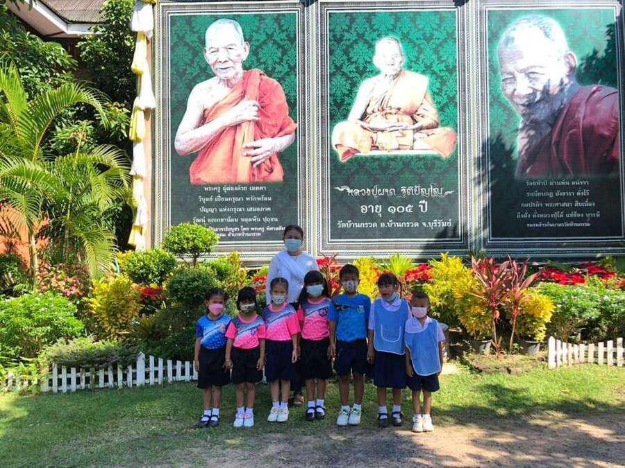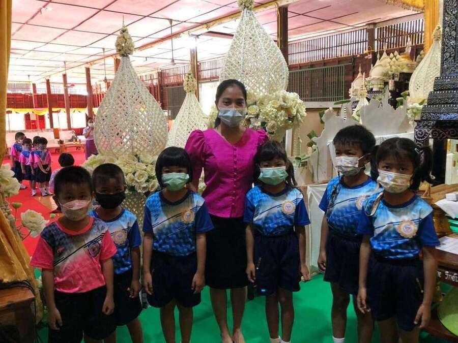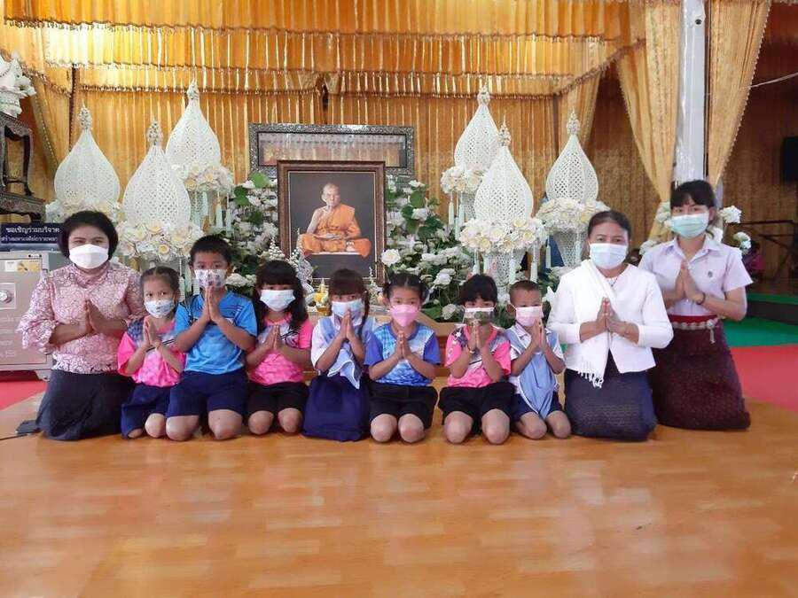 19 พฤศจิกายน 2564 ผู้บริหาร คณะครู และนร.อนุบาล 2 - 3 ร่วมกันทำบุญ ณ วัดบ้านกรวด