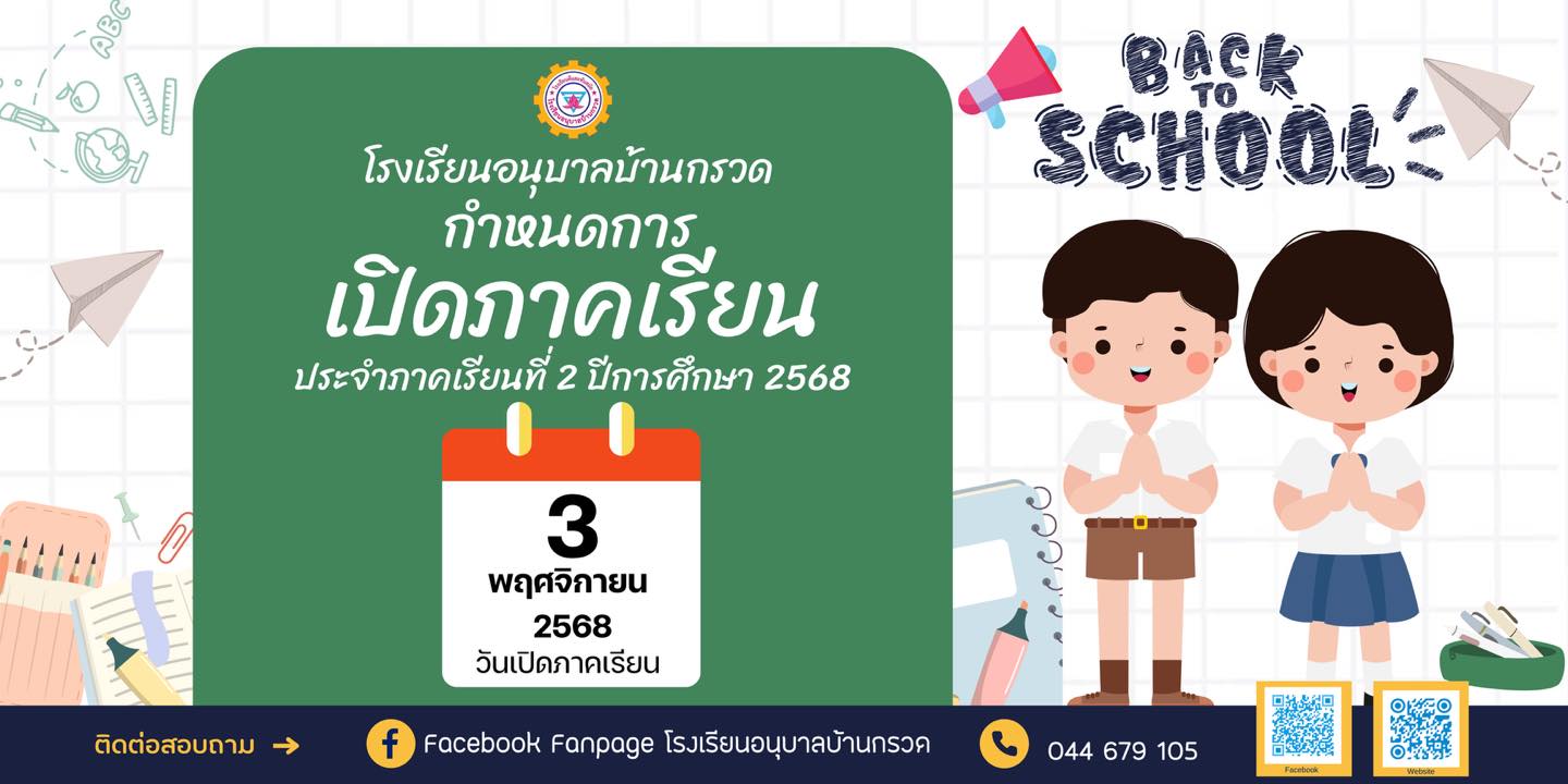 โรงเรียนอนุบาลบ้านกรวด กำหนดเปิดภาคเรียนที่ 2 ปีการศึกษา 2568 วันที่ 3 พฤศจิกายน 2568