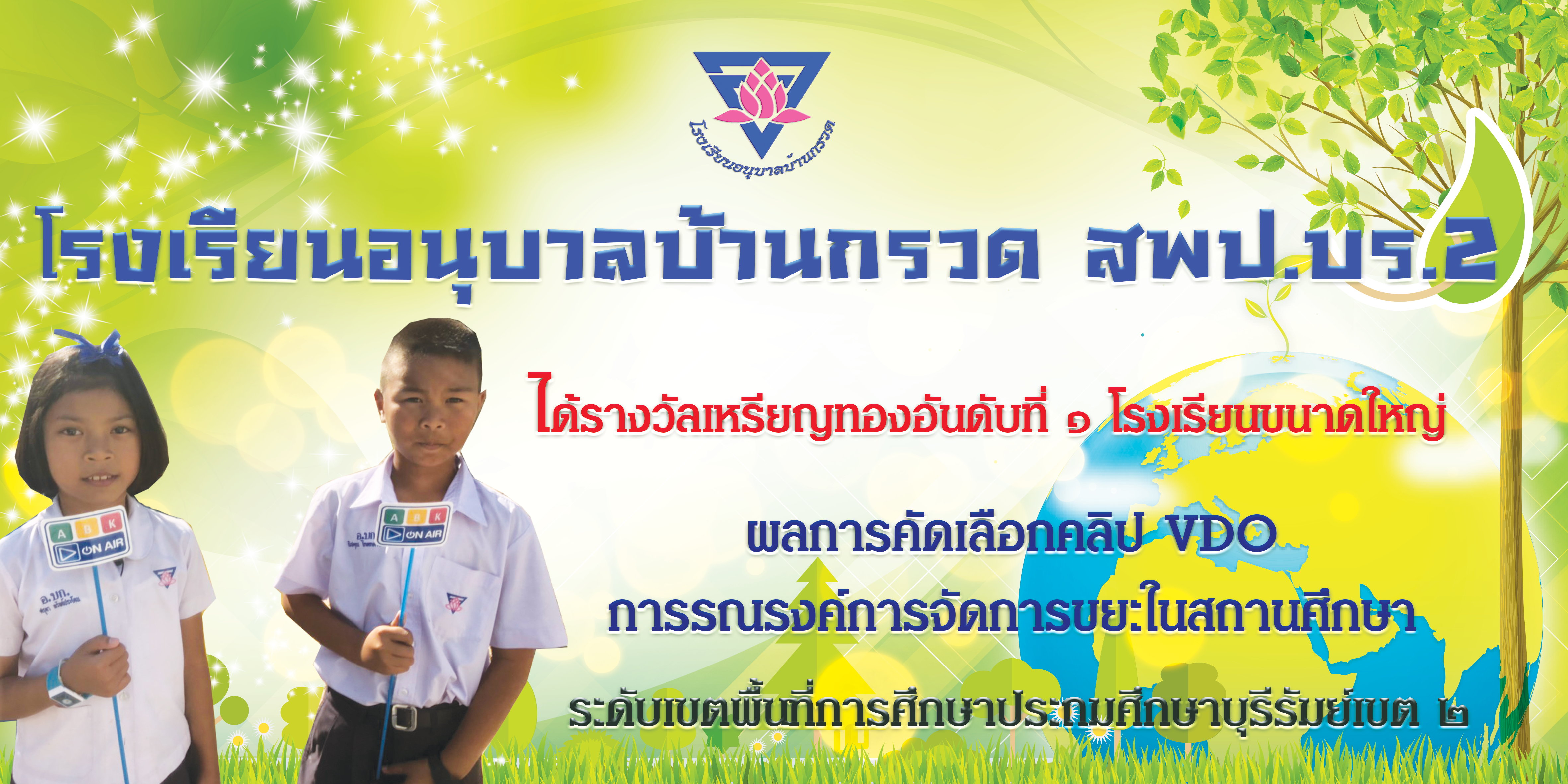 ตามที่สำนักงานเขตพื้นที่การศึกษาประถมศึกษา บุรีรัมย์ เขต ๒ ให้ดำเนินการคัดเลือกคลิป VDO การรณรงค์การจัดการขยะในสถานศึกษา โดยแบ่งการคัดเลือกเป็นสถานศึกษา ขนาดเล็ก ขนาดกลาง และขนาดใหญ่ ขนาดละ ๑ แห่ง ส่งสำนักงานคณะกรรมการการศึกษาขั้นพื้นฐาน โดยโรงเรียนอนุบาลบ้านกรวดที่ได้รางวัลเหรียญทองอันดับที่ ๑ โรงเรียนขนาดใหญ่ ทั้งนี้ทางสำนักงานเขตพื้นที่การศึกษาประถมศึกษาบุรีรัมย์ เขต ๒ จะนำส่งคลิป VDO ดังกล่าวให้สำนักงาน คณะกรรมการการศึกษาขั้นพื้นฐาน เพื่อพิจารณาเผยแพร่ประชาสัมพันธ์ ต่อไป