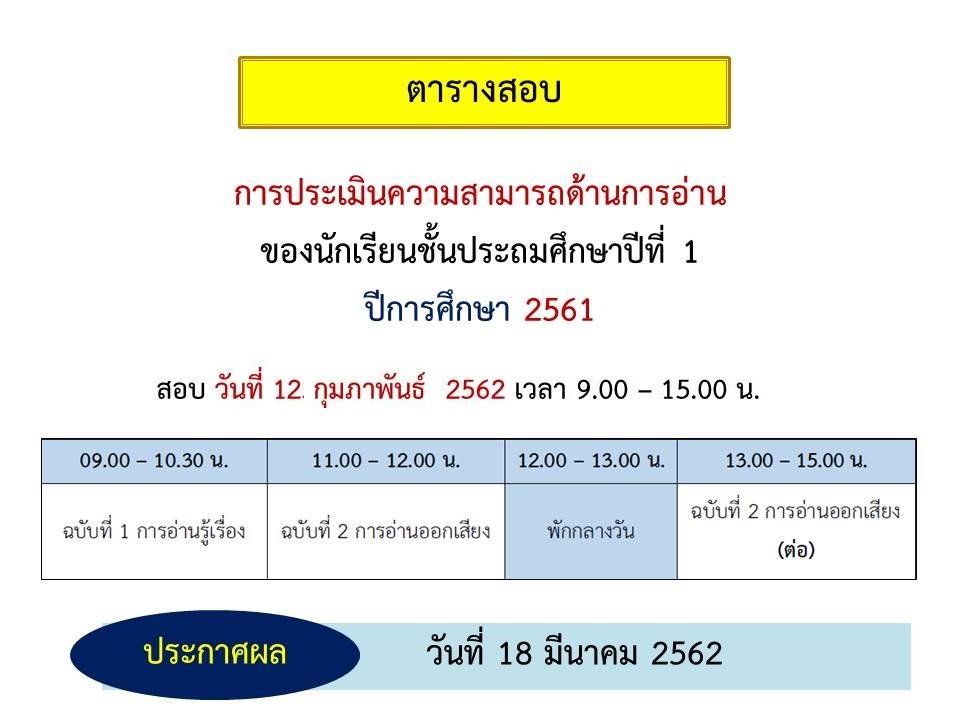 ตารางการสอบ RT ปีการศึกษา 2561 (ระดับชั้นประถมศึกษาปีที่ 1)