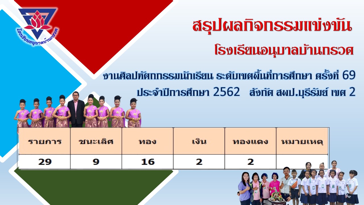 สรุปผลกิจกรรมแข่งขัน โรงเรียนอนุบาลบ้านกรวด สพป. บุรีรัมย์ เขต 2