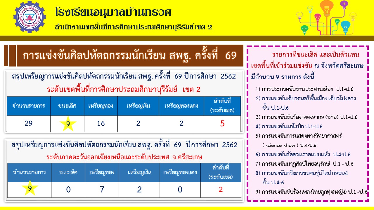 ผลการแข่งขันการเข้าร่วมงานศิลปหัตถกรรมภาคอีสาน ครั้งที่ 69 ณ จังหวัดศรีสะเกษ วันที่ 12-14 ธค.2562
