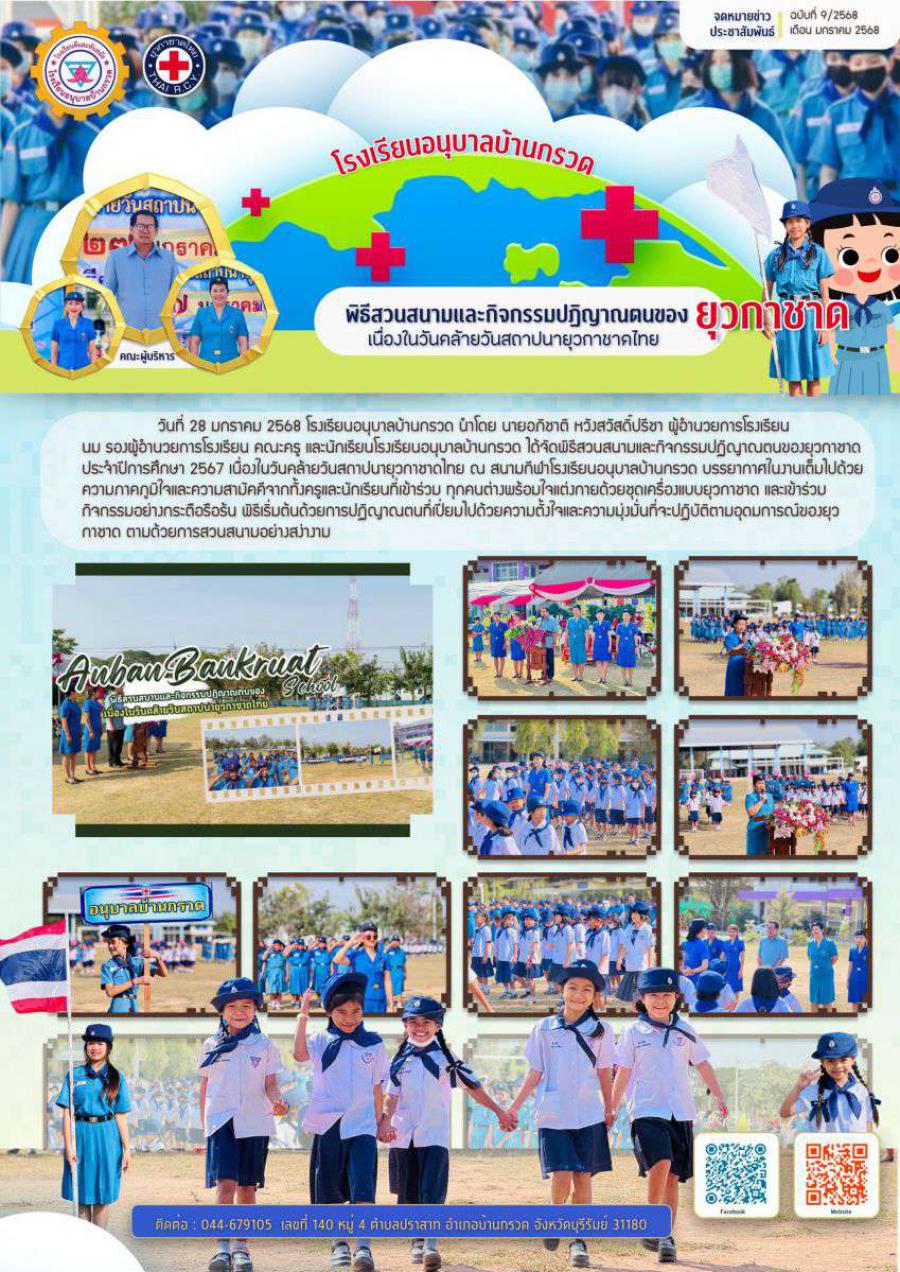 วันที่ 28 มกราคม 2568 โรงเรียนอนุบาลบ้านกรวด จัดพิธีสวนสนามและกิจกรรมปฏิญาณตนของยุวกาชาด ประจำปีการศึกษา 2567 เนื่องในวันคล้ายวันสถาปนายุวกาชาดไทย ณ สนามกีฬาโรงเรียนอนุบาลบ้านกรวด