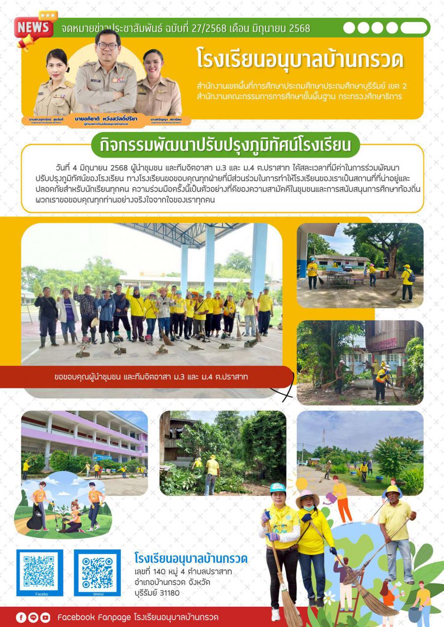 วันที่ 4 มิถุนายน 2568 ผู้นำชุมชน และทีมจิตอาสา ม.3 และ ม.4 ต.ปราสาท ได้สละเวลาที่มีค่าในการร่วมพัฒนาปรับปรุงภูมิทัศน์ของโรงเรียน ทางโรงเรียนขอขอบคุณทุกฝ่ายที่มีส่วนร่วมในการทำให้โรงเรียนของเราเป็นสถานที่ที่น่าอยู่และปลอดภัยสำหรับนักเรียนทุกคน ความร่วมมือครั้งนี้เป็นตัวอย่างที่ดีของความสามัคคีในชุมชนและการสนับสนุนการศึกษาท้องถิ่น พวกเราขอขอบคุณทุกท่านอย่างจริงใจจากใจของเราทุกคน