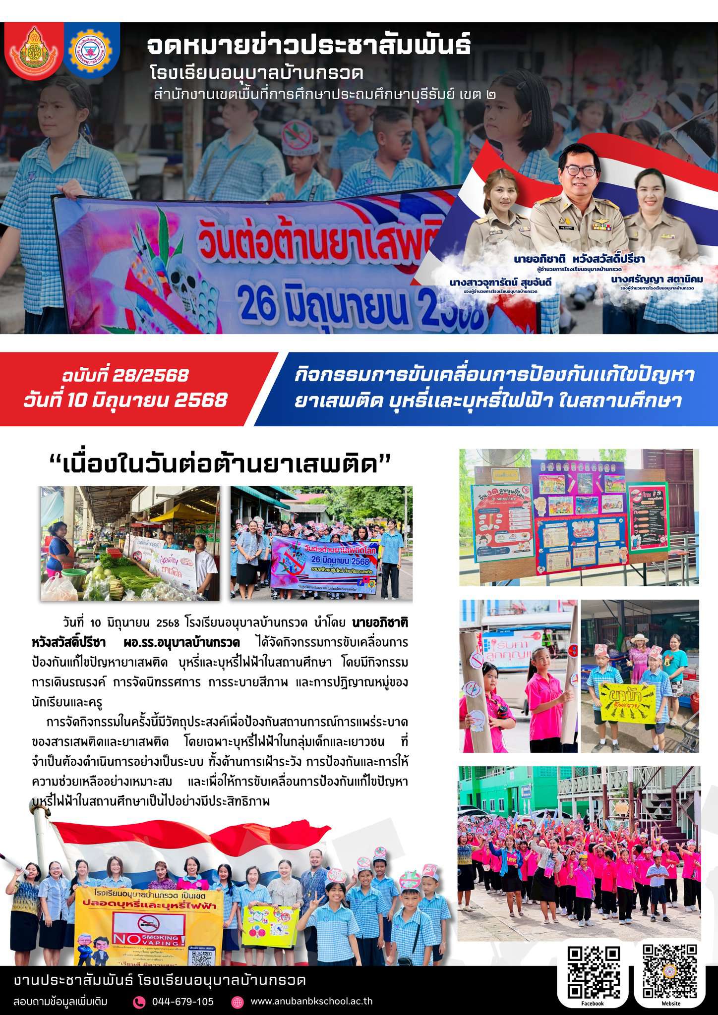 โรงเรียนอนุบาลบ้านกรวด นำโดยท่านผู้อำนวยการโรงเรียน นายอภิชาติ หวังสวัสดิ์ปรีชา ได้จัดกิจกรรมการขับเคลื่อนการป้องกันแก้ไขปัญหายาเสพติด บุหรี่และบุหรี่ไฟฟ้าในสถานศึกษา โดยมีกิจกรรมการเดินรณรงค์ การจัดนิทรรศการ การระบายสีภาพ และการปฏิญาณหมู่ของนักเรียนและครู