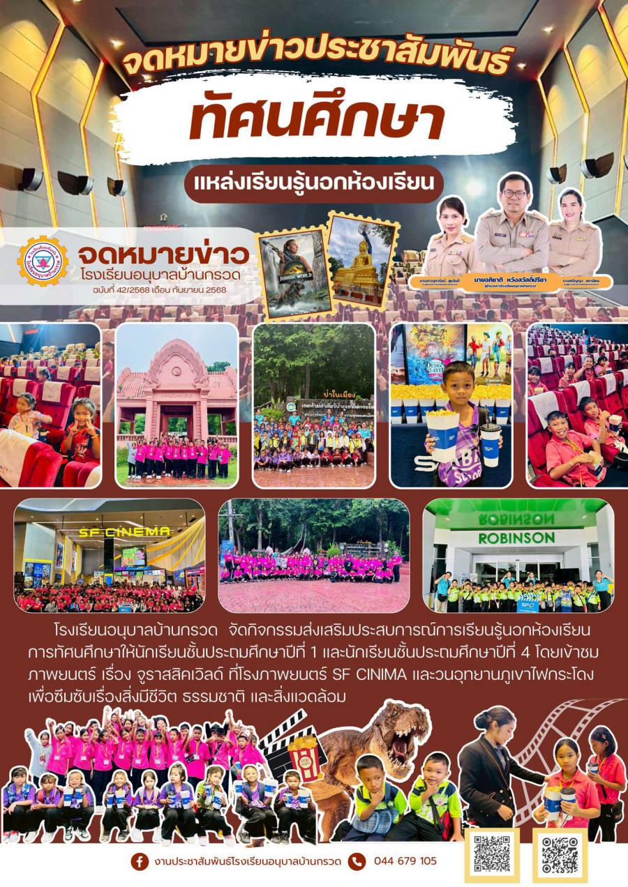 โรงเรียนอนุบาลบ้านกรวด จัดกิจกรรมส่งเสริมประสบการณ์การเรียนรู้นอกห้องเรียน การทัศนศึกษาให้นักเรียนชั้นประถมศึกษาปีที่ 1 และนักเรียนชั้นประถมศึกษาปีที่ 4 โดยเข้าชมภาพยนตร์ เรื่อง จูราสสิคเวิลด์ ที่โรงภาพยนตร์ SF CINIMA และวนอุทยานภูเขาไฟกระโดง เพื่อซึมซับเรื่องสิ่งมีชีวิต ธรรมชาติ และสิ่งแวดล้อม