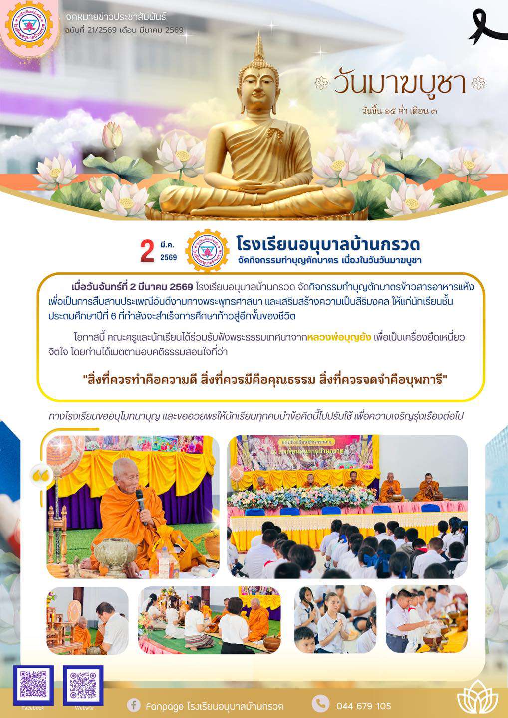 ทางโรงเรียนขออนุโมทนาบุญ และขออวยพรให้นักเรียนทุกคนนำข้อคิดนี้ไปปรับใช้ เพื่อความเจริญรุ่งเรืองต่อไป